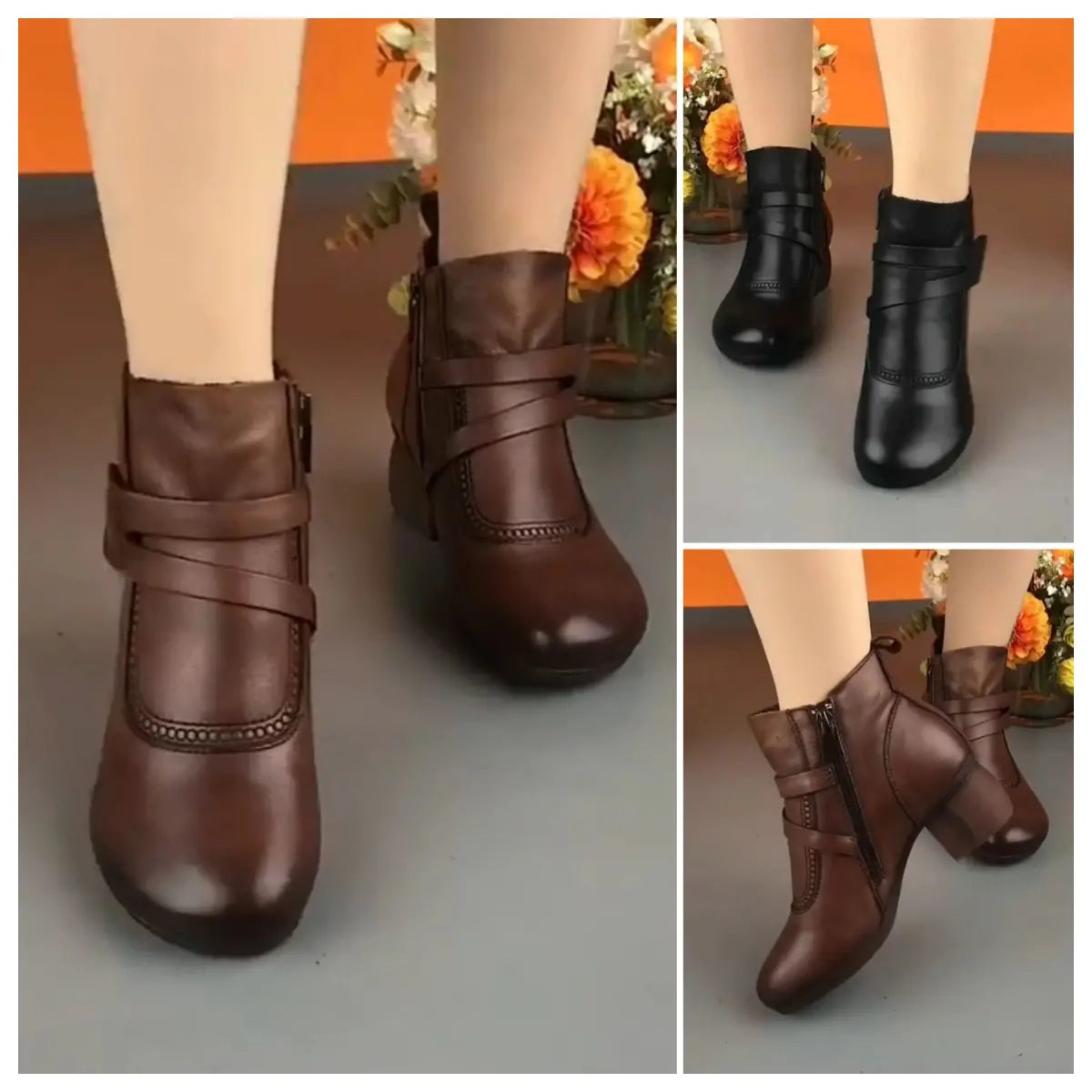 【35-40】 2023 új őszi és téli retro oldalsó cipzáras rövid csizma