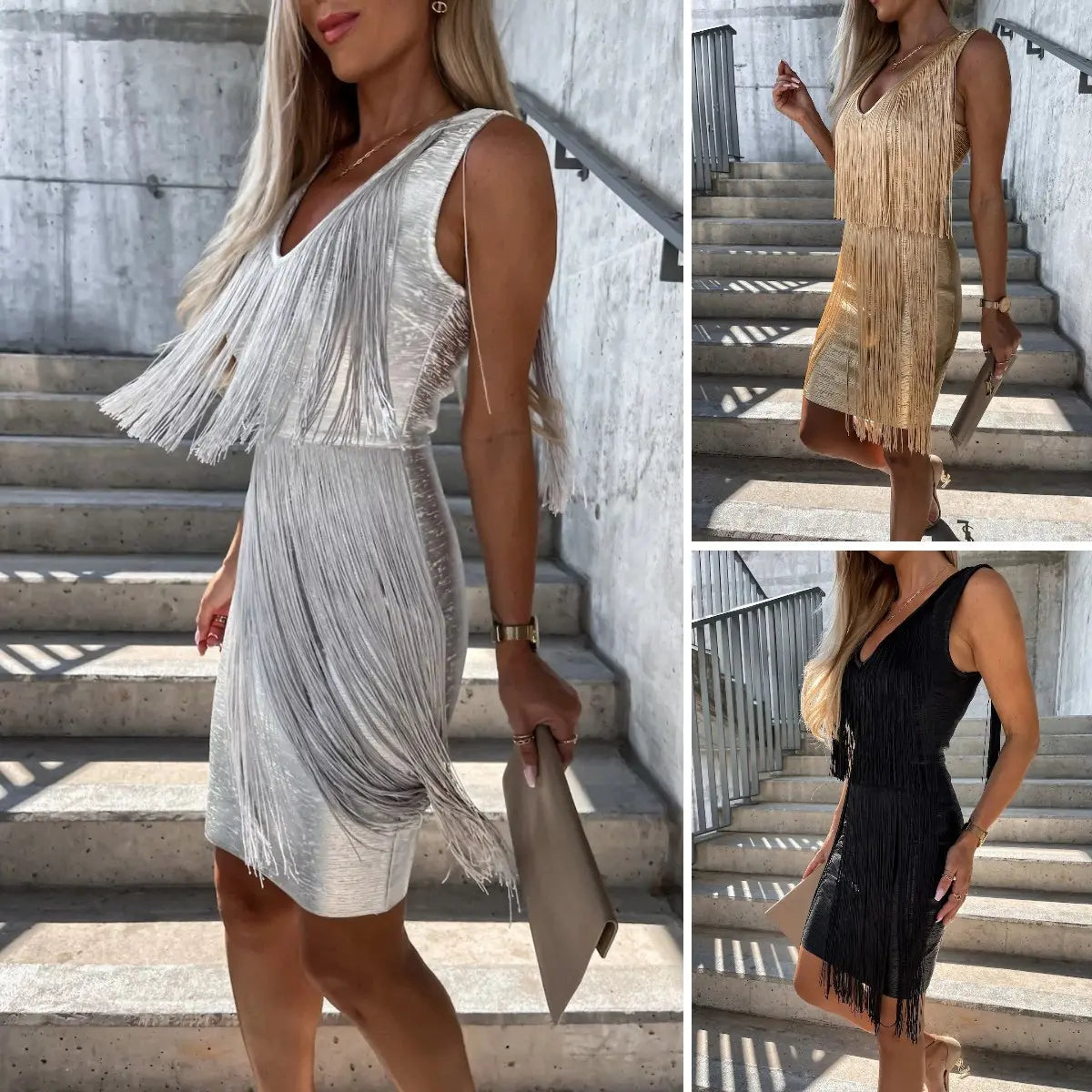 【50-85 kg】 Szexi V rojtos ruha