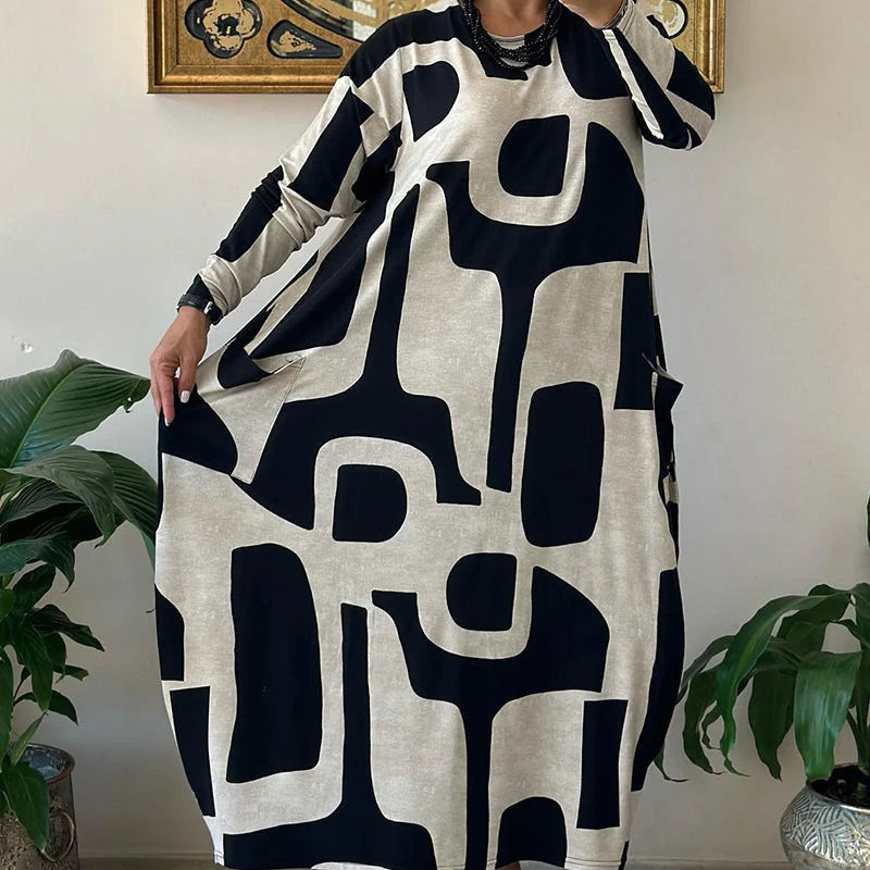 KÉNYELMES FIZETŐ: A laza nyakú és tágas szabású ruha elegánsan illeszkedik a különböző testtípusokhoz, így a kényelem oázisát nyújtja a stílus feláldozása nélkül.