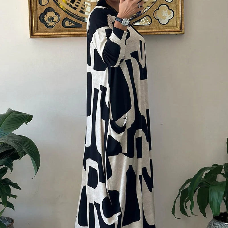 A csomag tartalma: 1 * Kontrasztmintás hosszú női ruha
