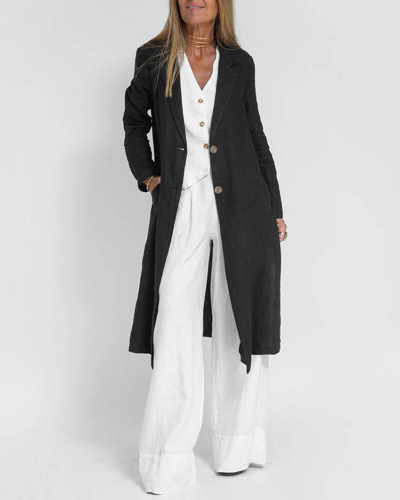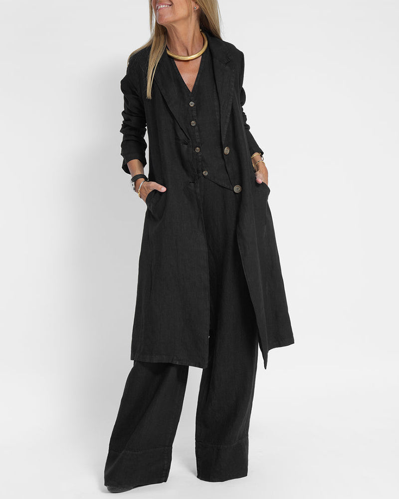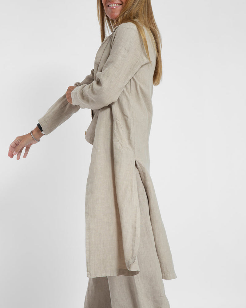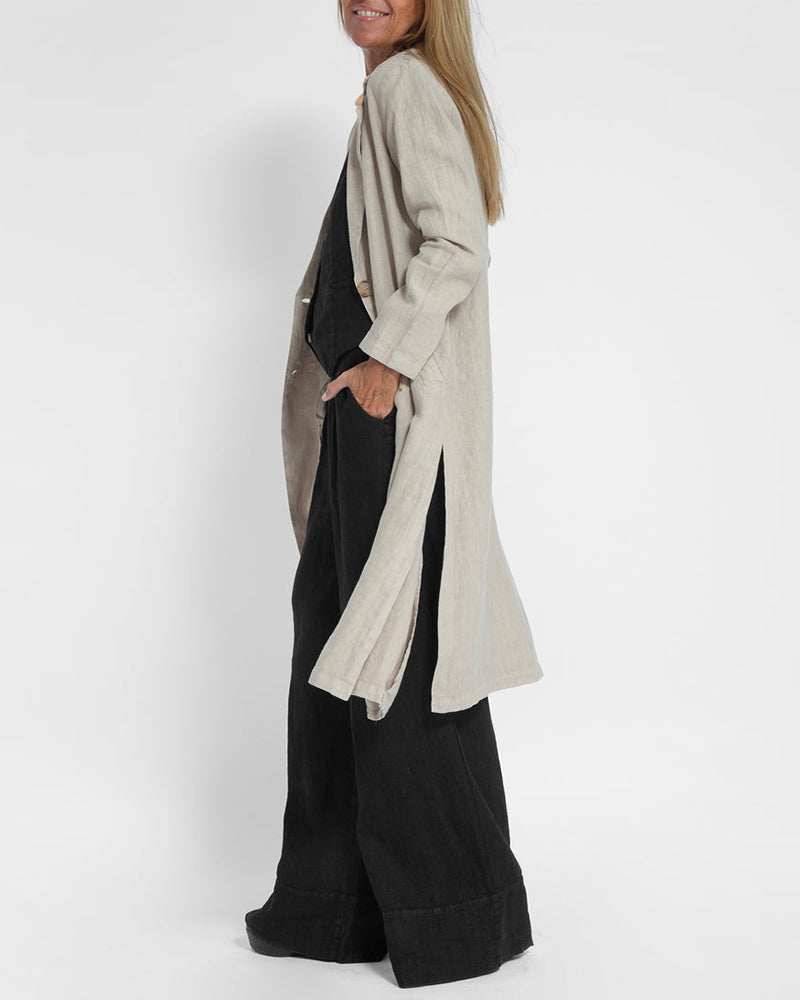 Alkalmi karcsúsított, hosszú gallérú kabát füles zsebekkel