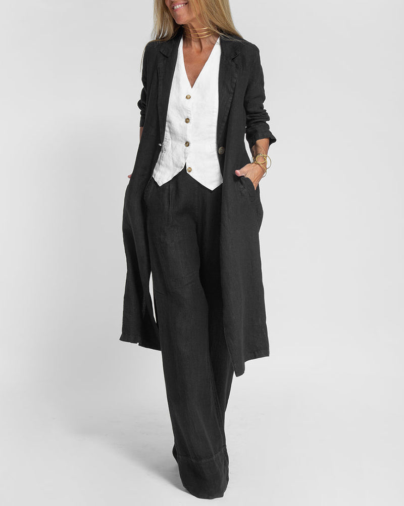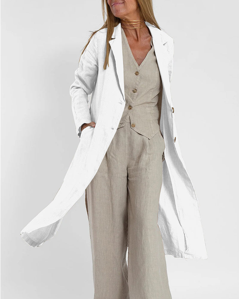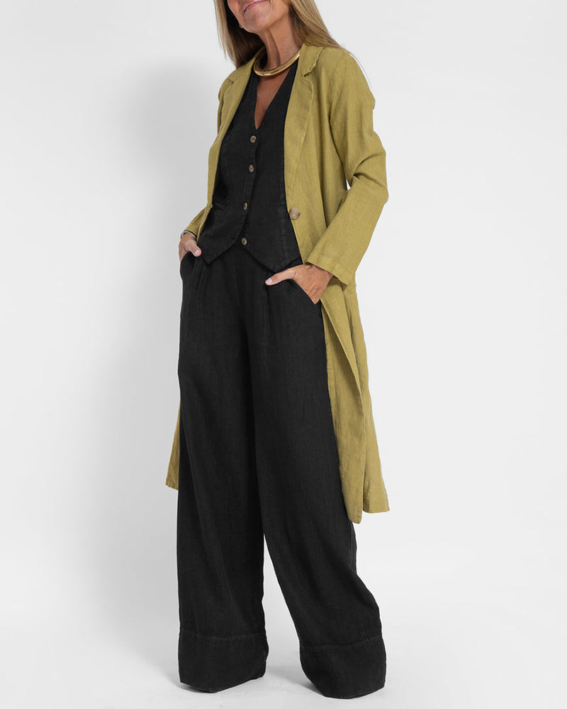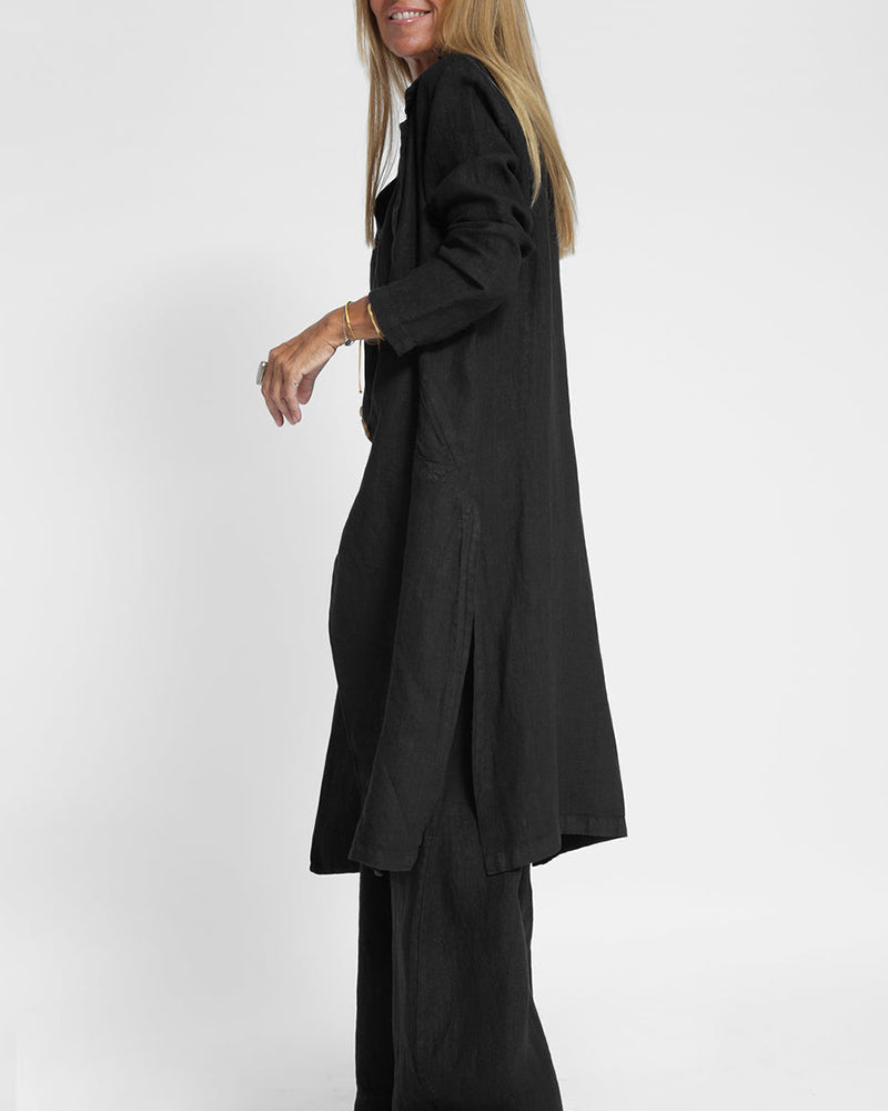 Alkalmi karcsúsított, hosszú gallérú kabát füles zsebekkel