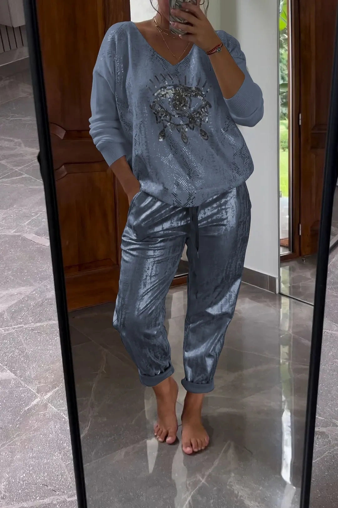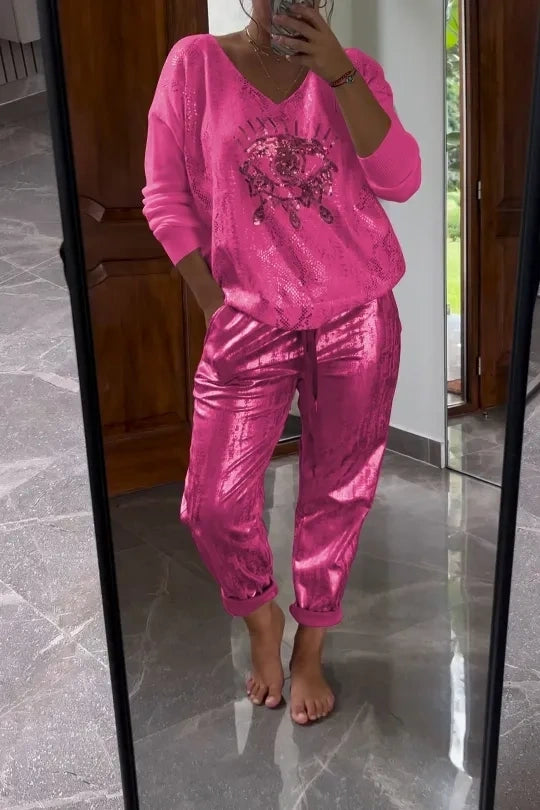 Kétrészes flitter szett bronz nadrággal