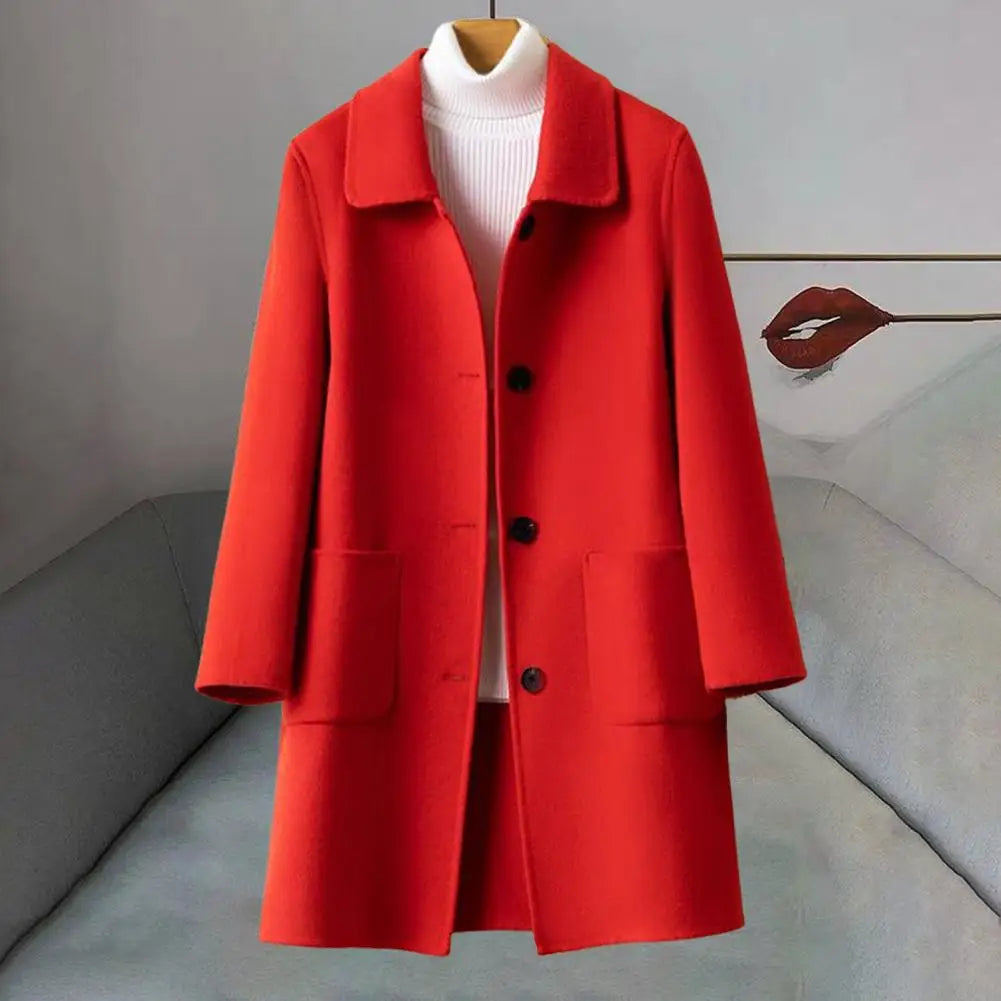 Ez a hosszú ujjú gyapjúkabát elöl elegáns gombokkal van befejezve, ahol a melegség találkozik a stílussal.