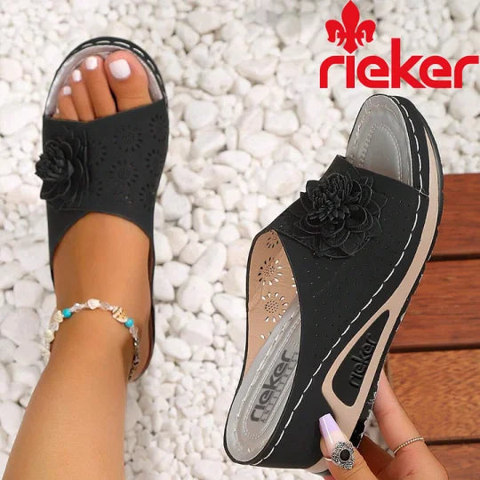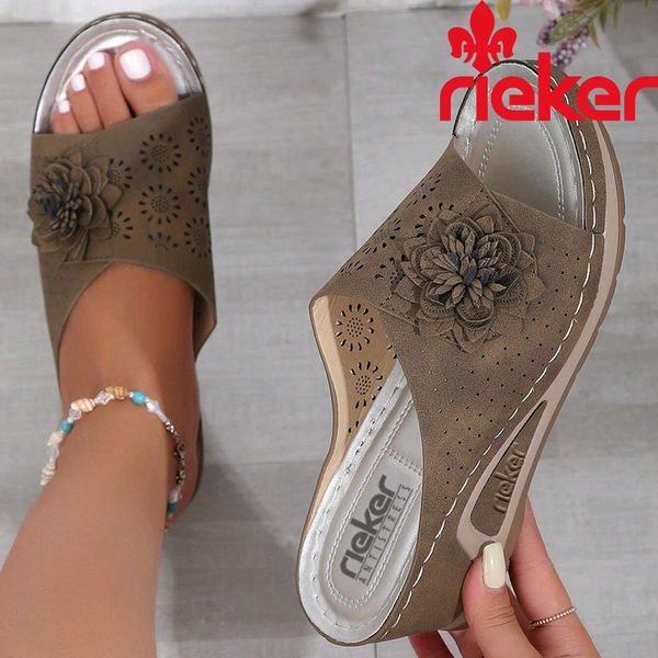 Rieker® Női Flip Flop ortopéd szandál nyárra Kézzel készített női sétáló szandál párnázott talpbetéttel Ék szandál kényelmes ívtámasz védelemmel a talpi fasciitis ellen Ezek a szandálok vonzó hétköznapi szandálok, amelyek a játékos részleteket párnázott járási kényelemmel ötvözik!