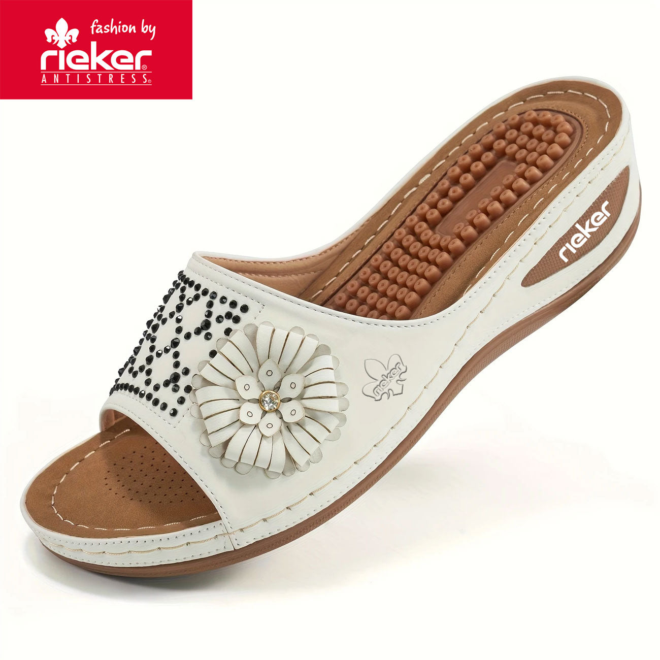 Rieker, nyári új női ortopéd ékszandál virágmintával 2025-től