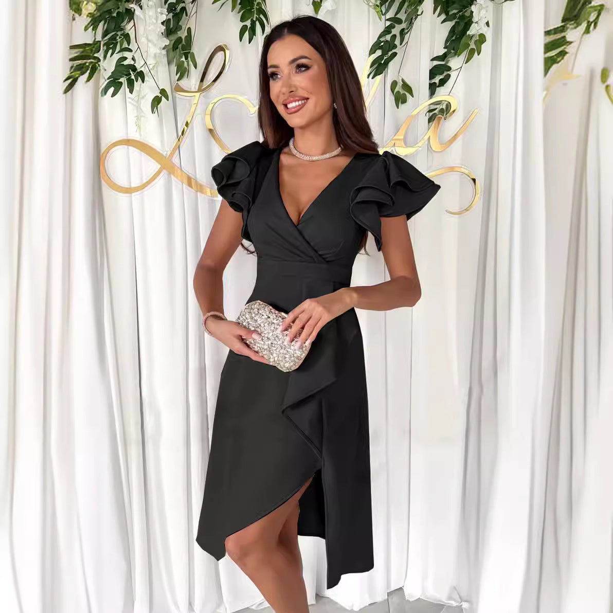 Szexi és testhezálló ruha rövid ujjal és V-nyakú