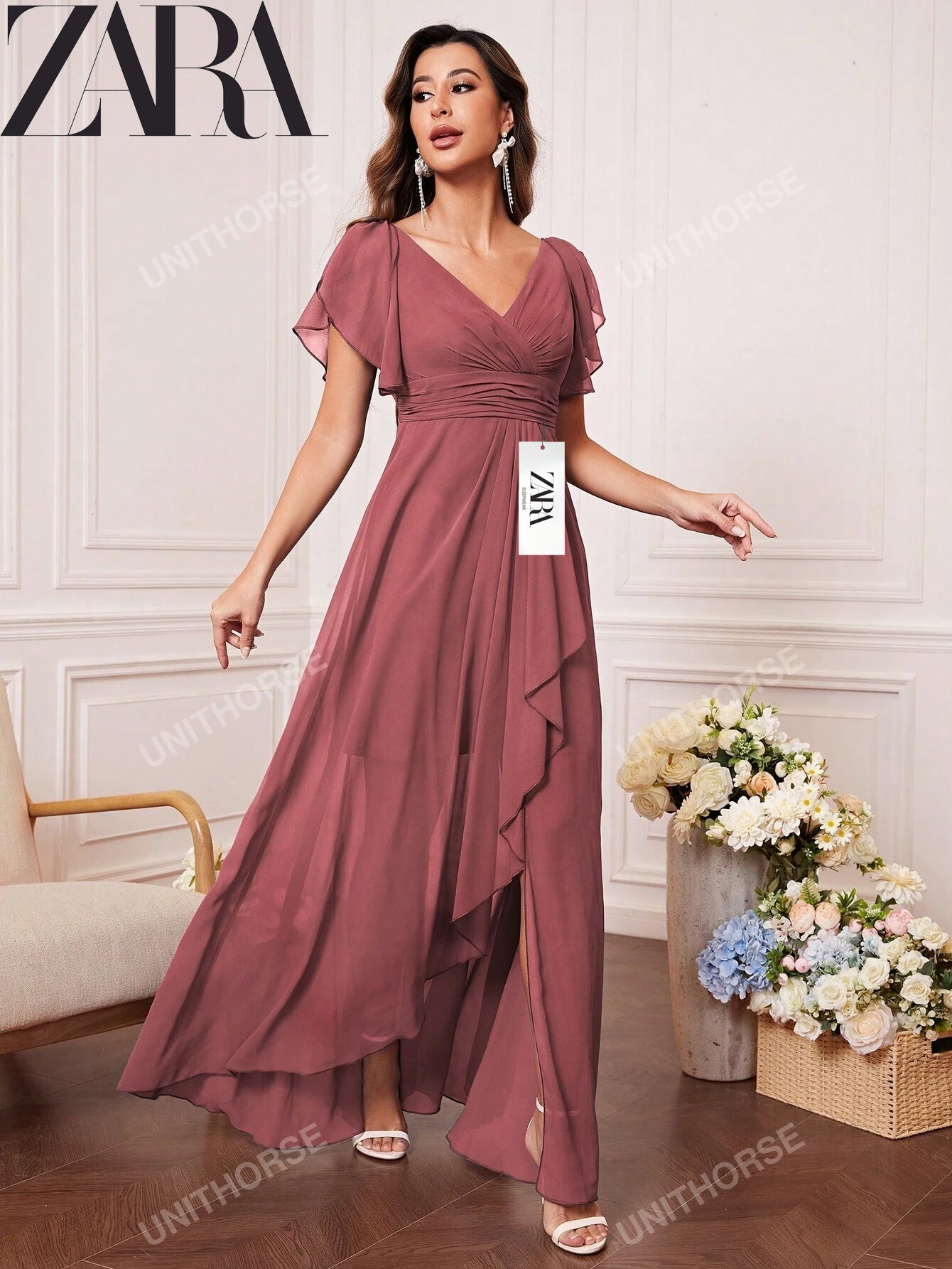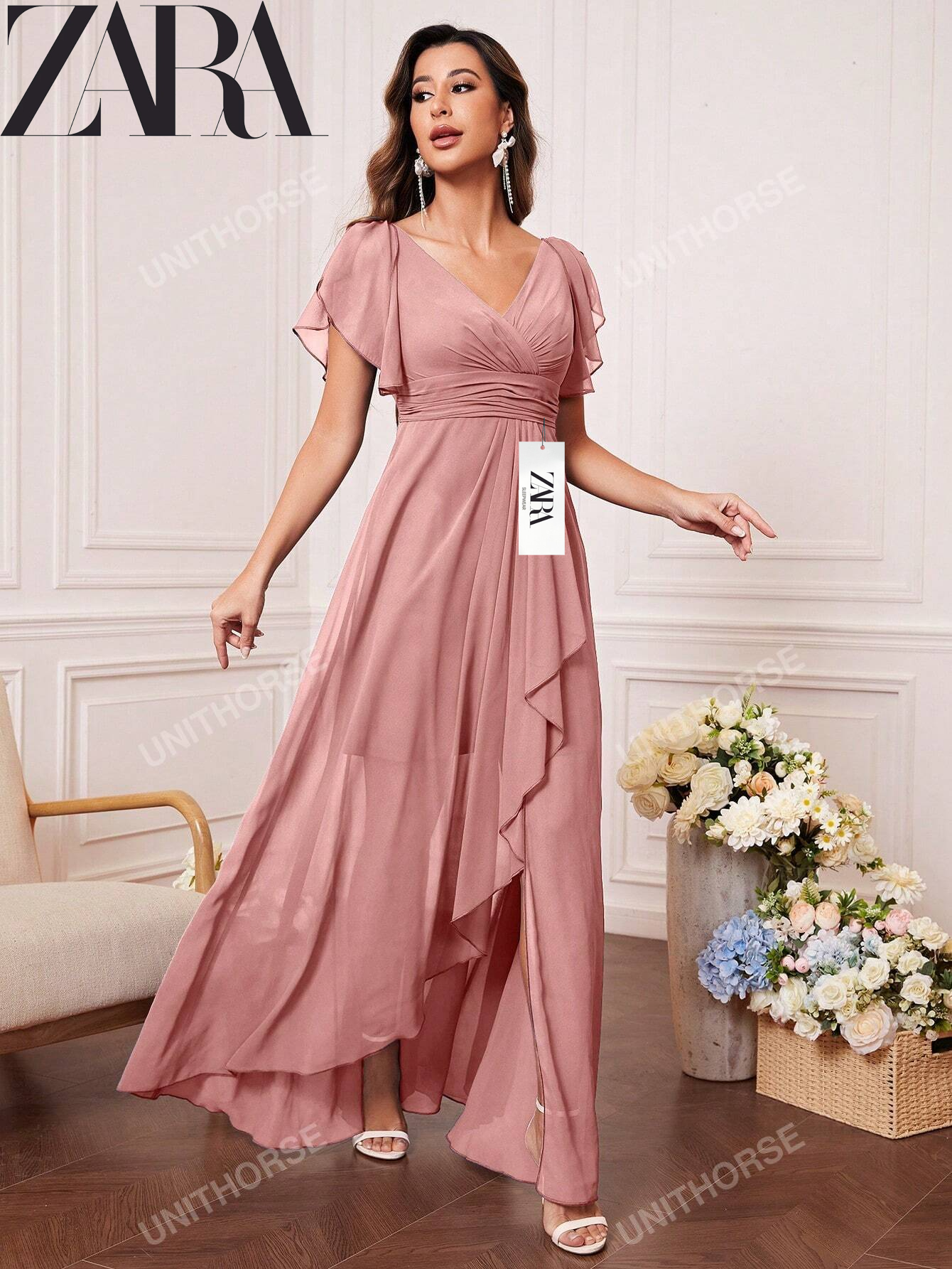 4"Csifon varázslatot varázsolhat ruhatárába ezzel a ráncolt pillangós ujjú sifonruhával. Áramló sziluettje és finom részletei minden partin különlegesnek érzik magukat."