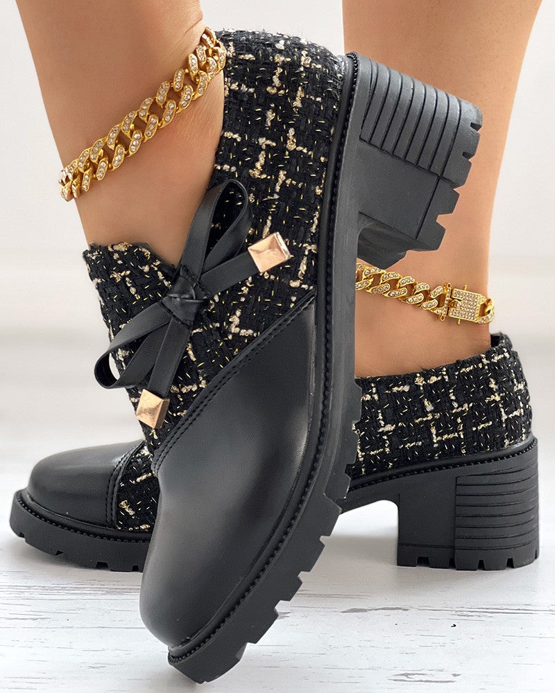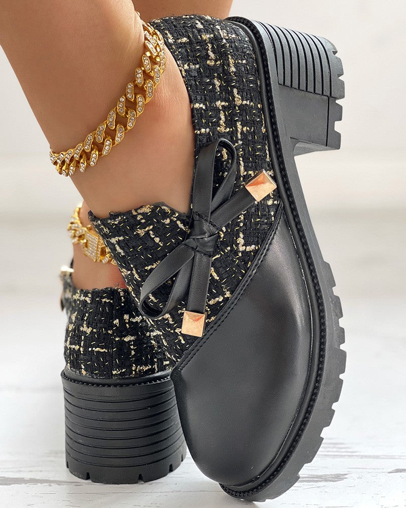 Tweed Patch Bowknot Decor vaskos sarkú naplopók