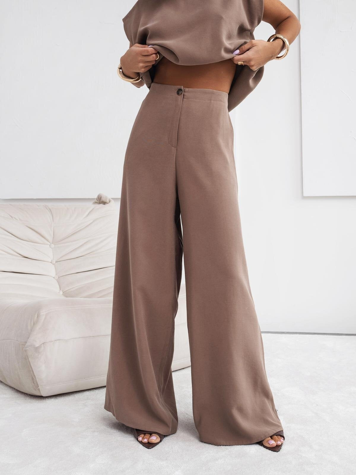 Széles szárú nadrág – Ezek a bő szárú nadrágok laza, kényelmes szabással rendelkeznek, rugalmas derékkal a kényelem érdekében, és elegáns sziluettel, így alkalmasak munkába vagy szabadidőbe.