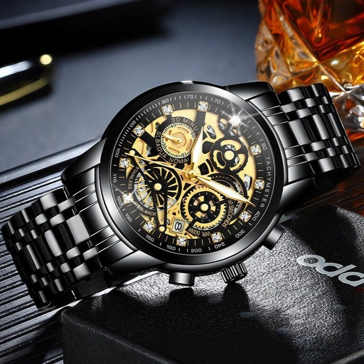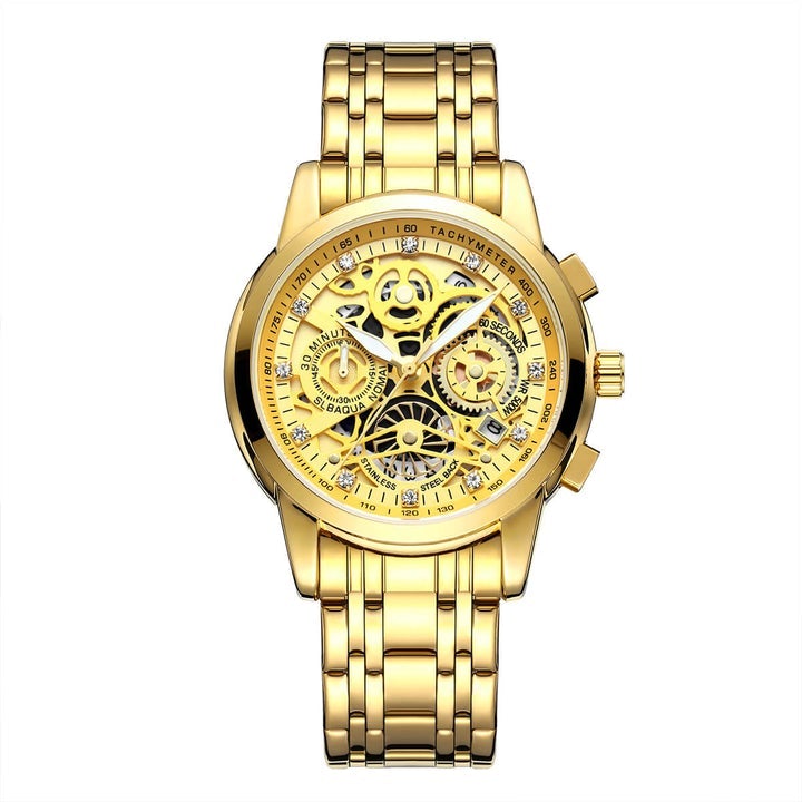 - Ez a nagyon elegáns Magnus Vanir a legjobb anyagokból készült. A fényes burkolat szemet gyönyörködtető részletekkel arany és ezüst rozsdamentes acélból készült.