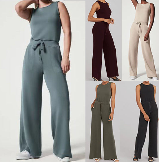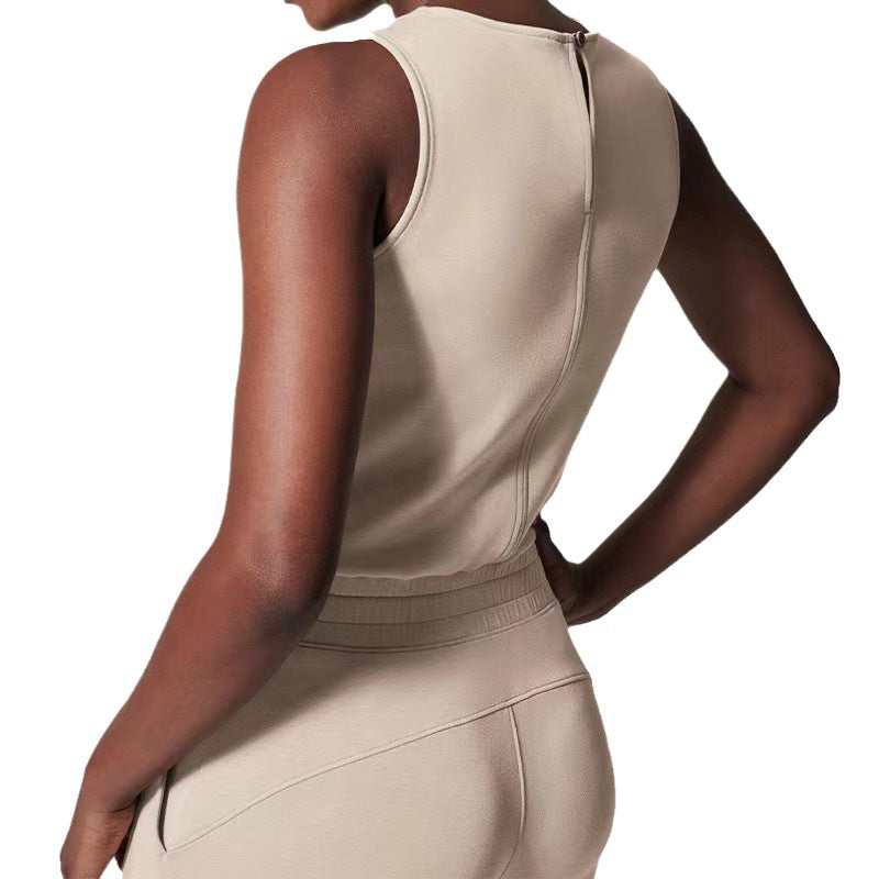 2023 novo verão cor sólida macacão elástico sem mangas para amarrar