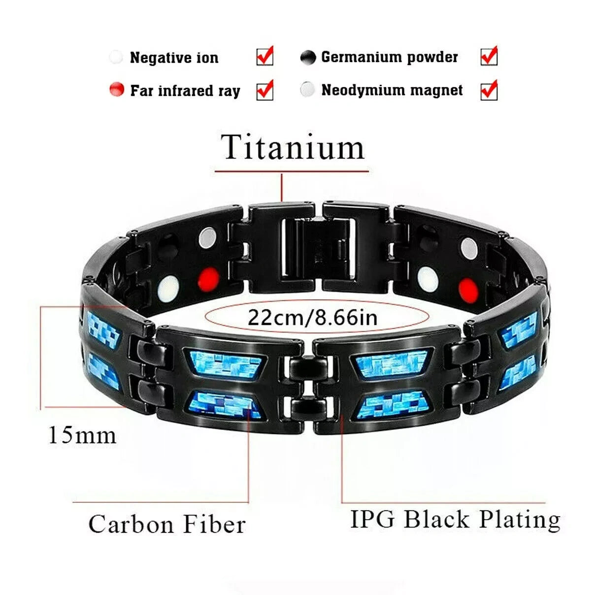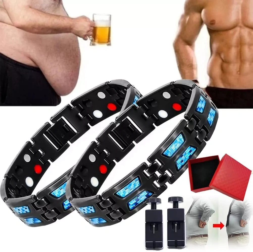 2 db szénkék titán mágneses terápiás karkötők, egy kétsoros erősségű