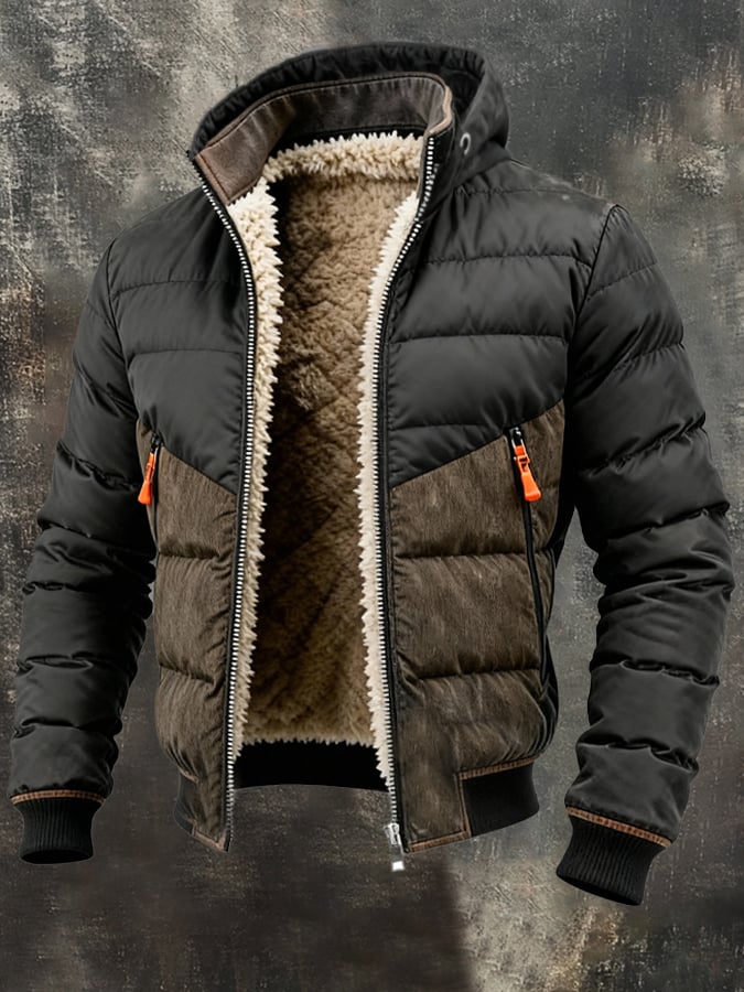 Férfi retró, steppelt, patchwork kabát cipzárral, meleg és kényelmes
