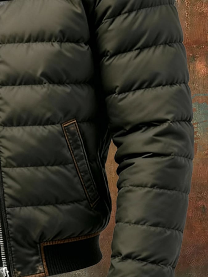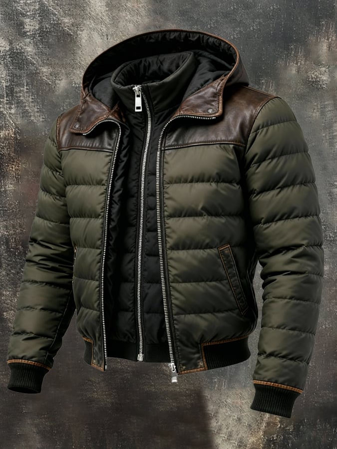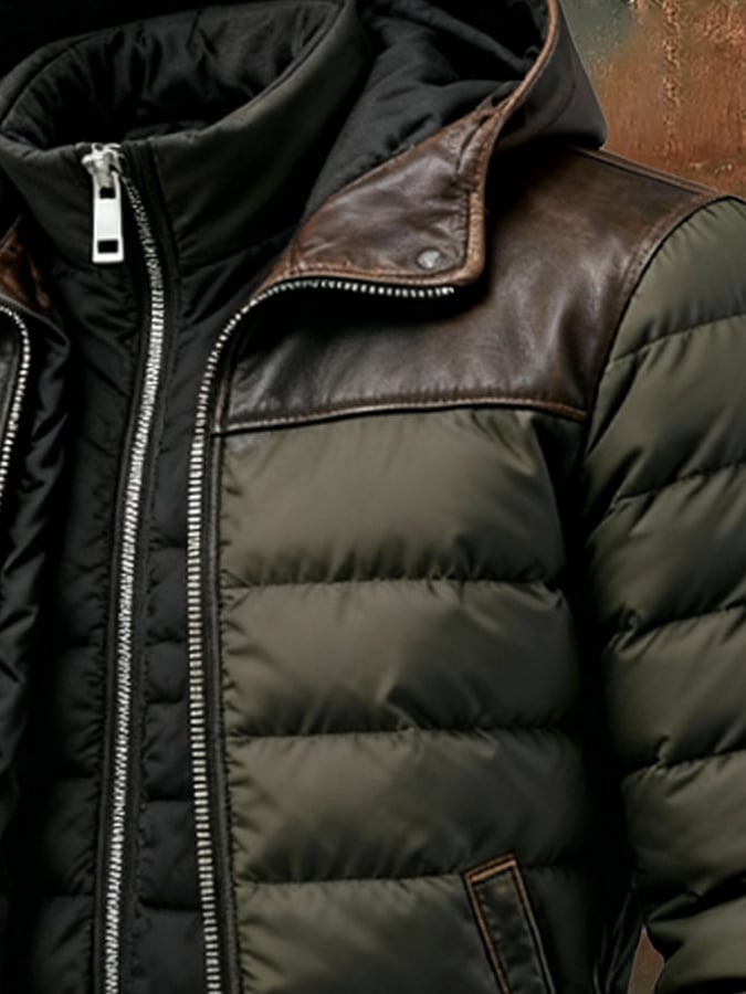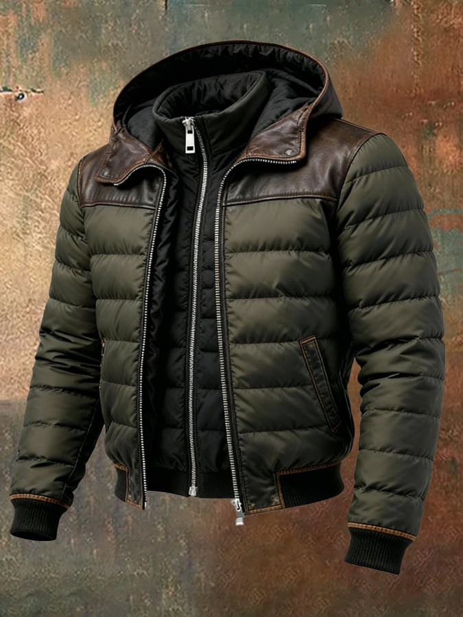 Férfi retró steppelt kabát patchwork stílusban, kétrészes, meleg, cipzáras, kültéri tevékenységekhez
