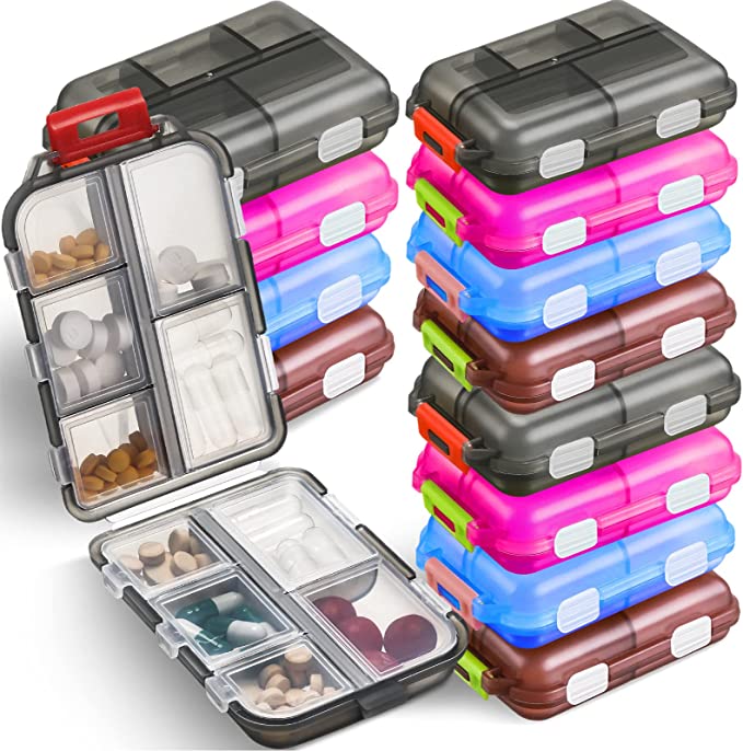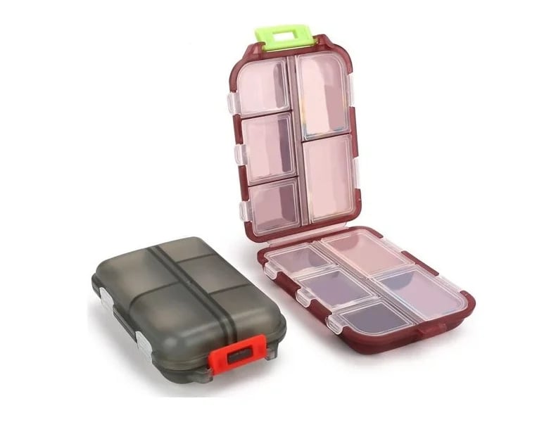 A 10 egyedi rekesszel és a hitelkártya méreténél alig nagyobb teljes mérettel az On-The-Go gyógyszertár könnyen hordozható.